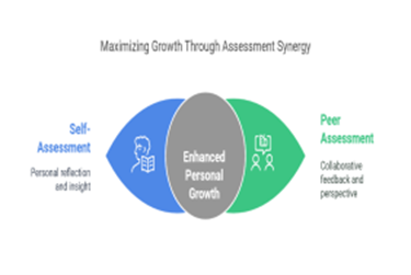 Self and peer assessment are valuable tools for improving learning and fostering accountability. Self-assessment allows individuals to reflect on their own work, identify strengths and areas for improvement, and take ownership of their learning. Peer assessment involves students or colleagues evaluating each other's work based on established criteria. It promotes collaborative learning, provides diverse perspectives, and helps learners develop constructive feedback skills.